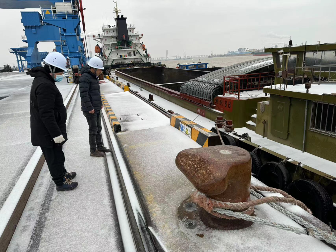 響水港區(qū)啟動氣象災(zāi)害 (道路結(jié)冰、寒潮、暴雪)應(yīng)急響應(yīng),對靠泊碼頭的船舶、設(shè)備防風工作作出周密部署和安排。對機械設(shè)備防風裝置及風速儀等設(shè)施進行逐一排查,切實做好大型設(shè)備標準防風工作;對靠港船舶檢查防滑網(wǎng)、扶手繩等,并要求全部船舶按照規(guī)范要求系泊纜繩;對變電所、箱變、輸電線路等設(shè)施進行了統(tǒng)一檢查,排除用電安全隱患,全方位保障生產(chǎn)安全穩(wěn)定。