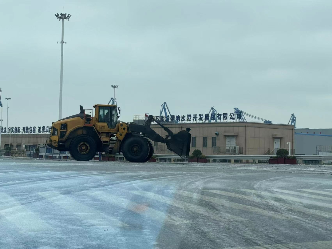 為排除現(xiàn)場積雪,防止道路結(jié)冰帶來的安全隱患,響水港區(qū)采取“機械+人工”協(xié)同作業(yè)模式,對港區(qū)重點區(qū)域、主要道路和交通要道等進行清掃,同時根據(jù)道路積雪情況,適時組織拋撒融雪劑,全力以赴保障港區(qū)道路暢通及職工出行安全。