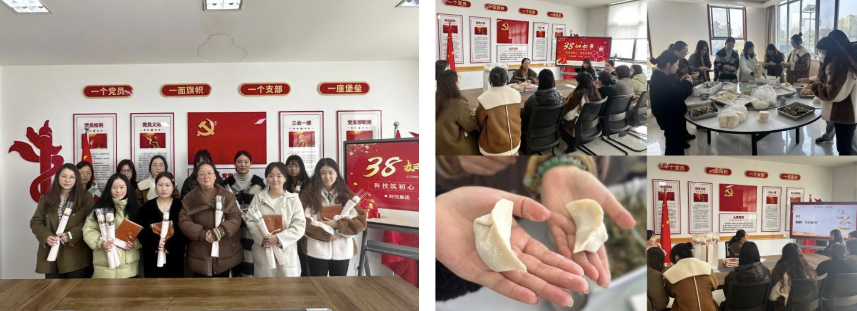 科技集團立足“科技筑初心、共話巾幗夢”主題,精心策劃、用心組織,分別開展了知識快競答、花樣包水餃、贈花送祝福活動。以花之名、贈爾余香,祝福她們的工作生活能夠像鮮花一樣綻放。