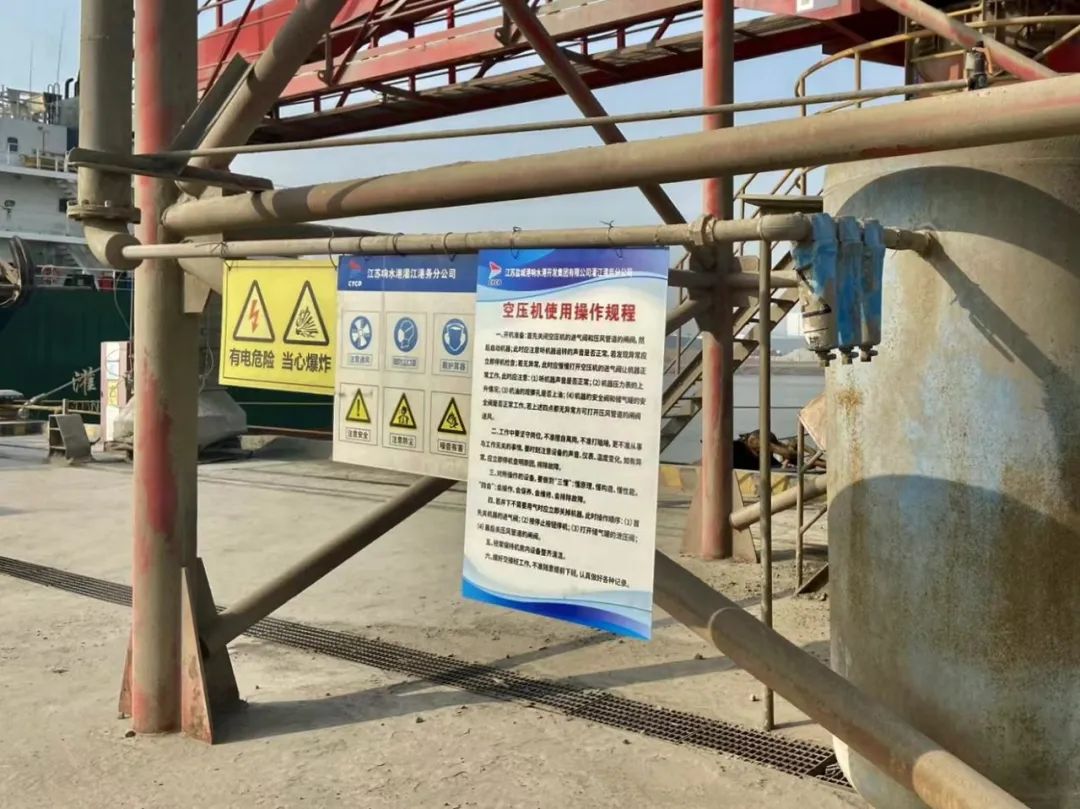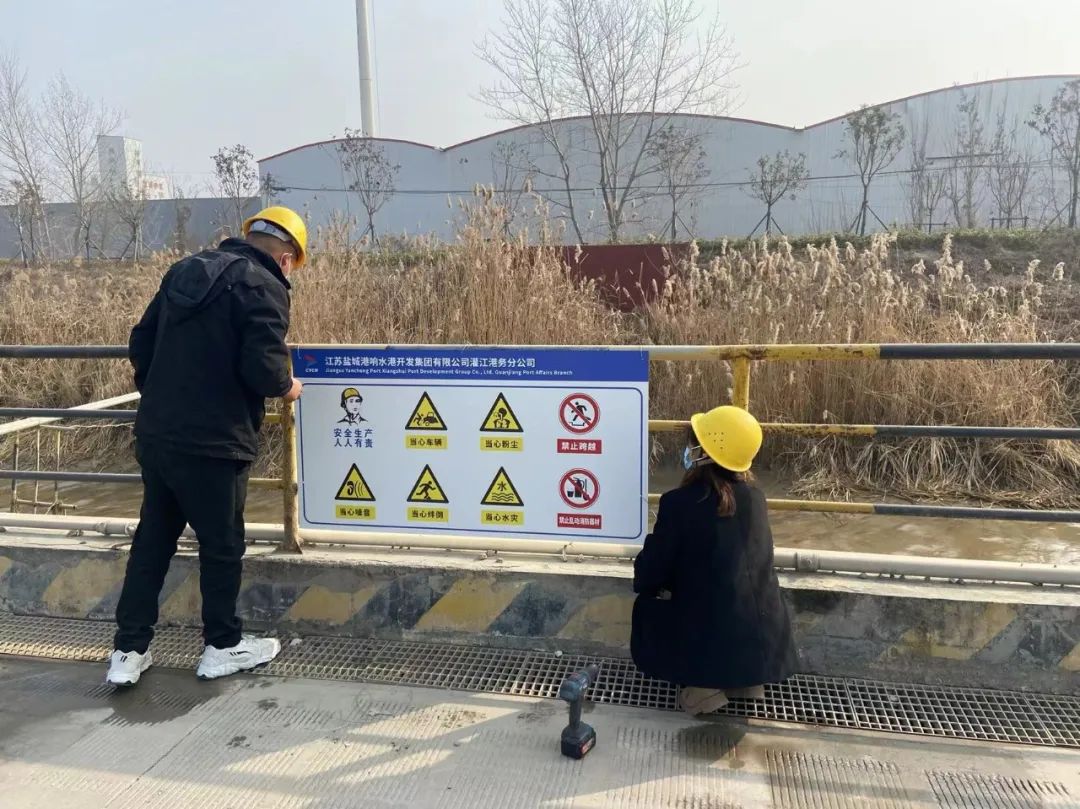 為進一步提升碼頭作業現場安全管理水平,堅持落實“零事故”目標,樹牢生產“紅線意識、底線思維”,響水港區灌江港務分公司在碼頭作業區增設了新的標識標牌,對老舊警示標識牌進行更換,進一步系緊通航“安全帶”,筑牢安全“防火墻”。