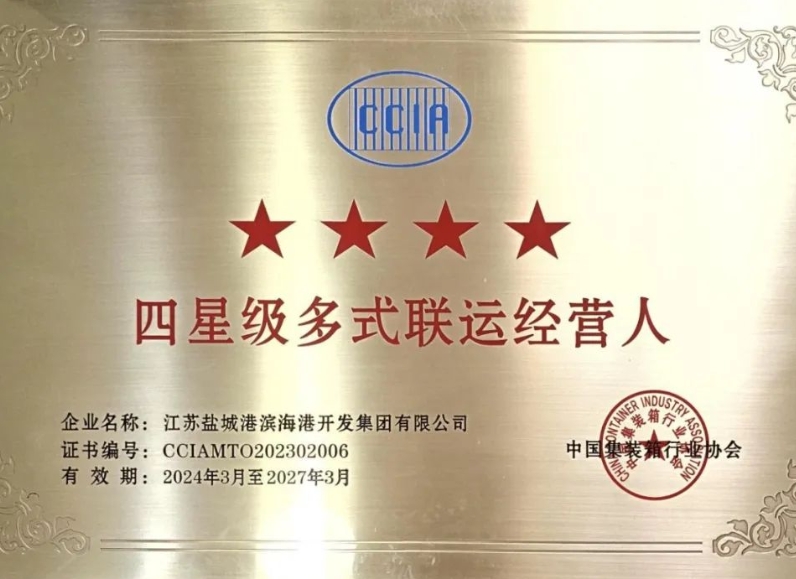 近日,中國集裝箱行業協會組織2024年度第一批多式聯運經營人等級評估。集團多家子公司經綜合評估,獲中國集裝箱行業協會星級多式聯運經營人資質認證,其中濱海港集團獲評四星級多式聯運經營人。