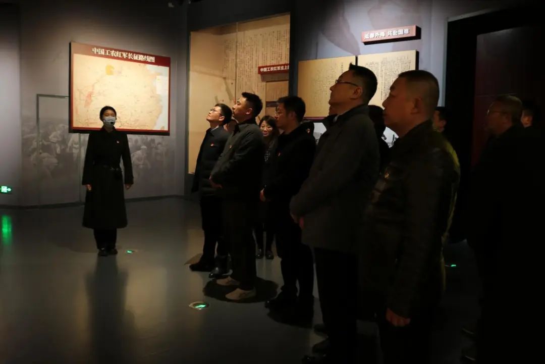 伴隨著烈士紀念日號角,參加活動的黨員干部和一線職工代表緩步走到紀念碑前,佇立凝視,深情緬懷,圣潔的花籃寄托著無限哀思和崇高敬意,大家逐一上前獻花并瞻仰紀念碑。在新四軍紀念館內,講解員帶領大家深入了解新四軍的發展歷程、重要戰役和杰出將領的事跡,感受著那個時代的艱苦與堅韌,體會著革命先輩們的偉大精神。面對鮮紅的黨旗,黨員們舉起右手,莊重宣誓,表達著對黨的忠誠和踔厲奮發推動港航事業發展的堅強信念。