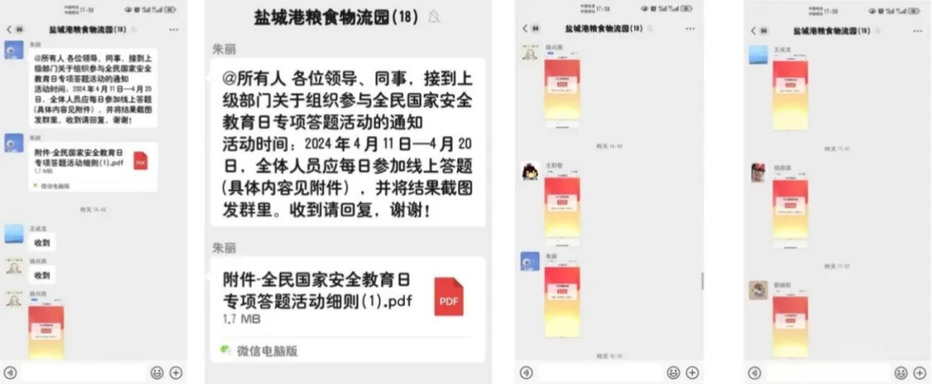 線上利用公司微信群、黨員學習微信群發送學習資料,全方位、多角度宣傳國家安全知識,進一步增強“國家安全無小事”的觀念和意識。