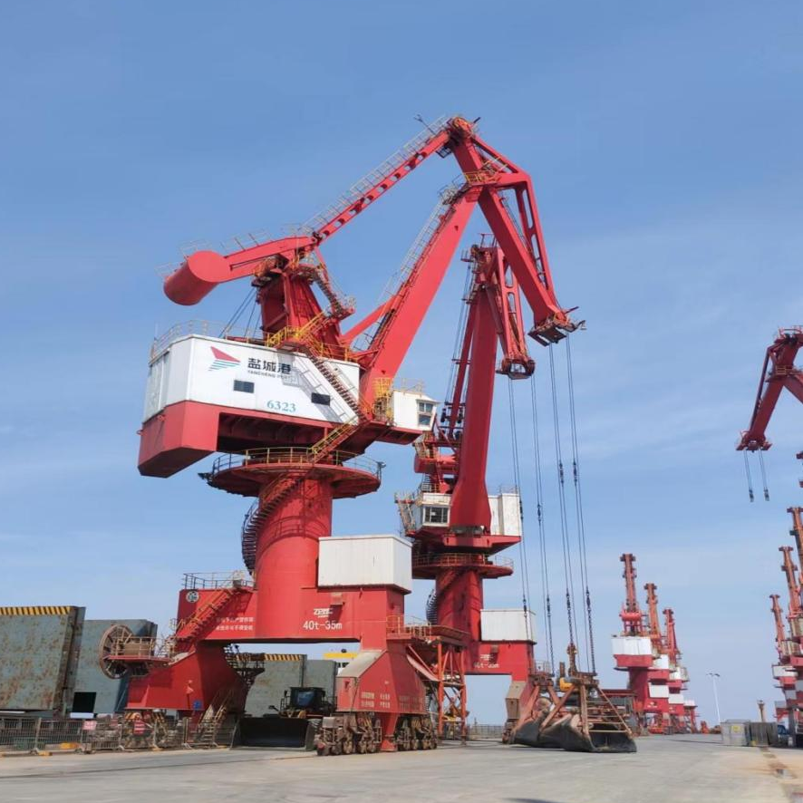 門座式起重機俗稱門機,是散雜碼頭、通用碼頭最常見的卸船起重設備,也是目前鹽城港各港區最常見的起重設備。一般來說,門機負荷有10T、16T、25T、40T四類負荷,目前鹽城港門機基本在25T和40T兩種。
