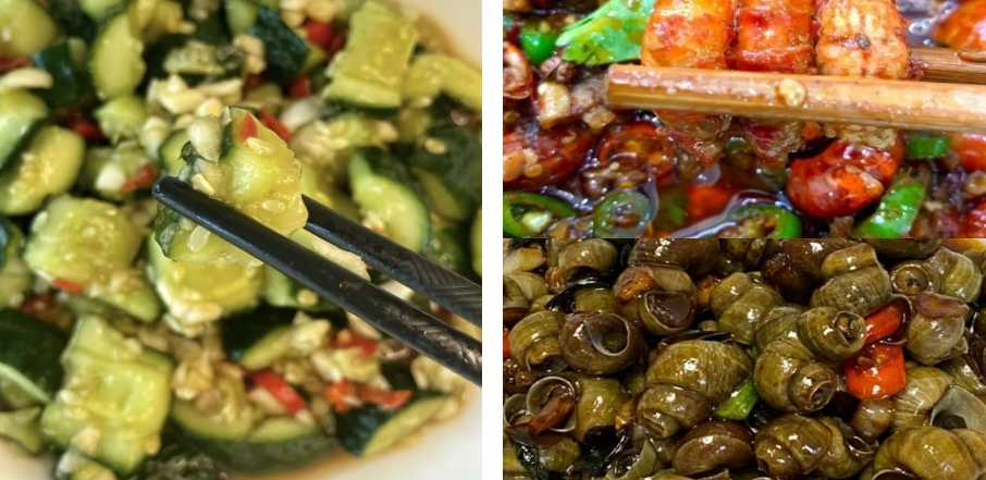 早餐有爽口的涼拌黃瓜,午餐是香辣的炒螺螺和下飯的毛豆龍蝦尾,下午還能來一杯清涼的綠豆湯或是一牙西瓜,想到家中冰箱里冒冷氣的飲料和冰棍,他說這是最美味的季節~