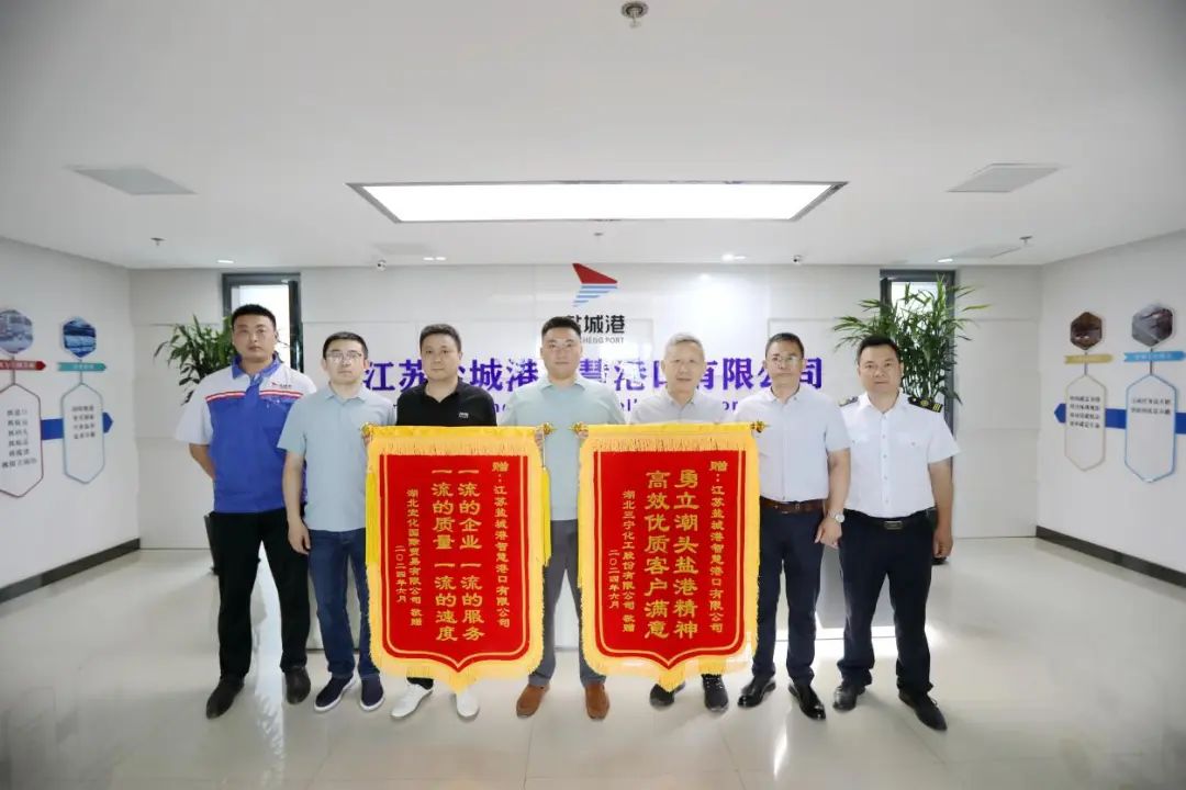 近日,鹽城港智慧港口公司收到湖北宜化國際貿(mào)易有限公司和湖北三寧化工股份有限公司贈(zèng)送的兩面錦旗,“一流的企業(yè) 一流的服務(wù) 一流的質(zhì)量 一流的速度”“勇立潮頭鹽港精神 高效優(yōu)質(zhì)客戶滿意”,寥寥數(shù)字,充分表達(dá)了客戶對智慧港口公司在船舶作業(yè)期間優(yōu)質(zhì)服務(wù)的感激之情。