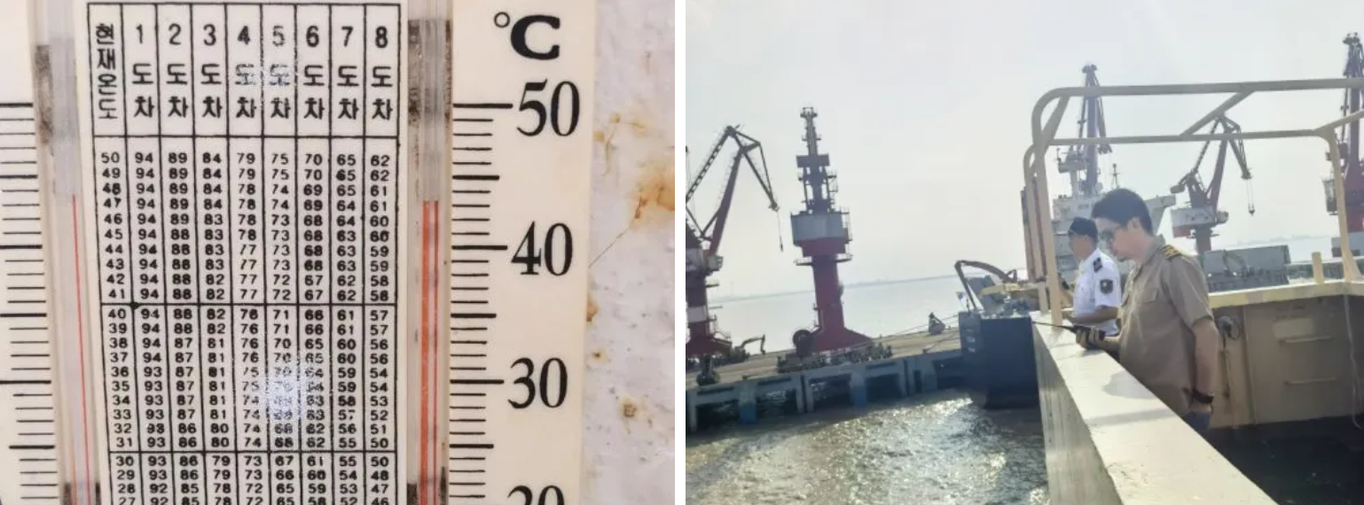 “蒸烤”在一線,持續(xù)的高溫陰雨天氣,讓引航工作一直處于蒸汽籠內的濕漉環(huán)境,每一次的引航都是一次全身“濕身秀”。尤其近日引領的滿載鐵礦的“雪松”輪,甲板上的溫度達到了40℃之上,加上雨水蒸發(fā)的一陣又一陣熱氣,模糊著視線的同時也在“蒸烤”著引航員的身心。即便如此,引航員們依舊一艘又一艘的引領著船舶安全進出港航行。