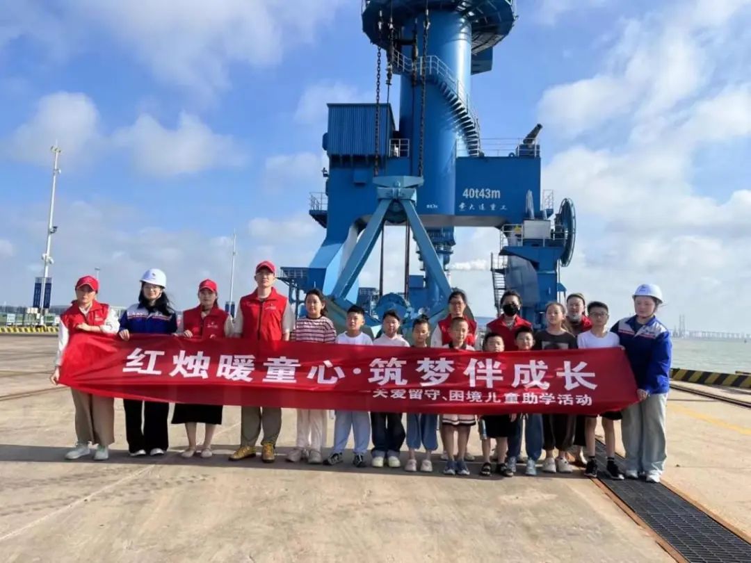 活動當日,兒童們在志愿者的陪護下,乘坐中巴車來到鹽城港響水港區中心碼頭現場參觀,看到高聳的大吊車和船舶,孩子們興奮不已,不停地向港區工作人員詢問問題。隨后響水港區青年志愿者和“愛心媽媽團”來到響水縣陳家港鎮未成年人保護工作站,詳細了解未成年保護工作站的運行情況,詢問兒童們學習及生活情況,并為孩子們贈送了書包、學習用品和助學慰問金。之后與孩子們一起閱讀課外書籍,幫助進行心理疏導與學習鼓勵。最后志愿者上門走訪一名品學兼優的高三學生,將助學禮包和慰問金送到該同學的手中,勉勵她認真學習,不要被眼前的困難所嚇倒,期待她明年高考好成績。