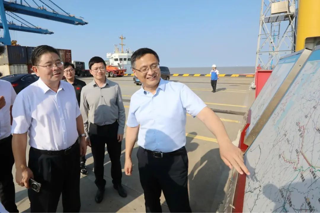 趙守才一行先后來到自動化集裝箱堆場、大豐港區集裝箱碼頭、通用碼頭等地實地調研,詳細了解港區生產經營、發展規劃及運營管理等情況。