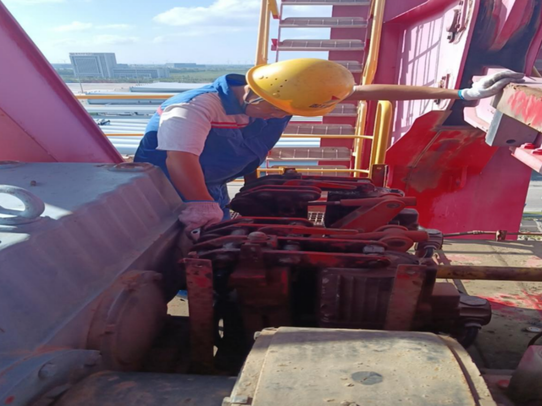 港區(qū)始終秉承“精修細(xì)檢、規(guī)范作業(yè)、杜絕三違、安全保障”理念,嚴(yán)格落實(shí)設(shè)備點(diǎn)檢,對癥下“刀”施治。加強(qiáng)安全裝置、電氣線路和鋼結(jié)構(gòu)等重要部位的檢查和整改,杜絕因線路老化、電線裸露和鋼結(jié)構(gòu)銹損等原因造成安全事故。針對雨水易造成各潤滑點(diǎn)、螺母處生銹等實(shí)際情況,在雨后或沖洗后及時進(jìn)行擦拭、加注黃油,以免設(shè)備腐蝕加速表面老化,進(jìn)一步做好門機(jī)探傷、除銹、刷漆、漏斗抓斗安全鑒定工作,延長設(shè)備設(shè)施使用壽命。