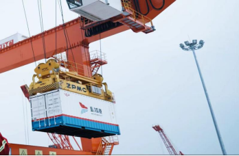 在碼頭橋吊的一起一落間