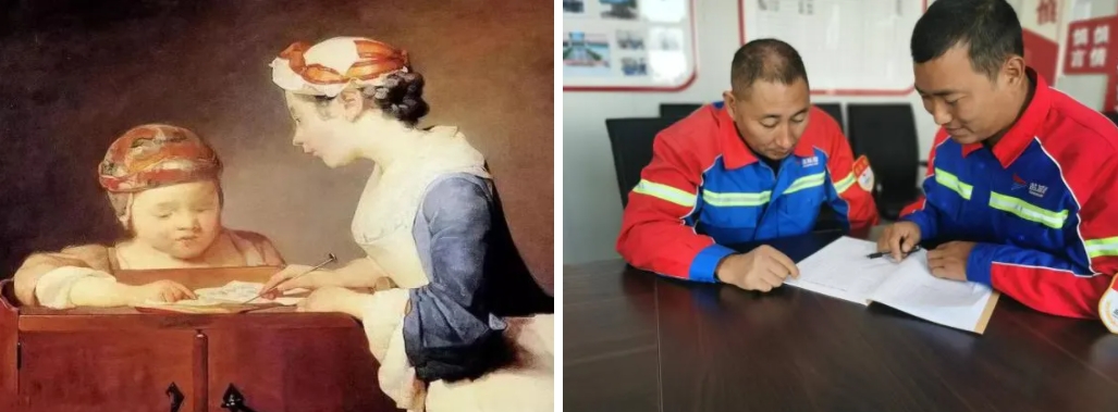 畫中老師耐心教導(dǎo)孩子