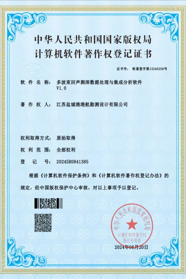 勘測設計公司積極推進創新創效工作,結合業務實際情況進行技術創新和課題研究。2024年公司取得軟件著作專利3件(《多波束回聲測深數據處理與集成分析軟件V1.0》《水環境智能分析系統V1.0》《遙感數據自動化處理平臺V1.0》),有力提升了公司測繪知識產權軟件產品的權威性和專業化測繪技術的競爭力;開展《鹽城港四港區理論最低潮面推算》自主課題研究,課題成果將在提升航行安全、優化航道利用、提高工程決策準確性等多方面帶來經濟效益。