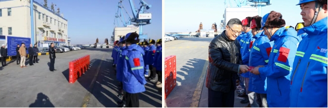 山舞銀蛇迎巳歲,精神振奮賀新春。1月29日,受集團黨委、董事會委托,當(dāng)天上午,集團黨委副書記、董事、總經(jīng)理陸帥率隊前往大豐港區(qū)看望慰問堅守在一線工作崗位的工作人員,代表集團黨委、董事會向他們致以新春的祝福和節(jié)日的問候。集團黨委委員、副總經(jīng)理丁安廣,集團相關(guān)部門和單位主要負(fù)責(zé)同志等參加。