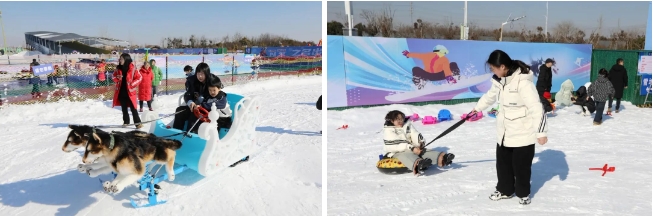 冰雪世界的滑雪場同樣洋溢著濃厚的春節氛圍,許多家庭選擇一起參與冰雪運動,既能鍛煉身體,又能增進親情,實現健康與親情的雙豐收。游客們身著五彩斑斕的滑雪服,在滑雪場盡情體驗速度與激情的碰撞。一位游客說道:“春節期間,可以把更多時間留給運動、興趣愛好。我也特意帶孩子體驗一下冰雪運動,與雪結緣的春節假期也很有意義。” 滑雪場還特意布置了紅燈籠、中國結等充滿年味的裝飾,讓游客在享受滑雪樂趣的同時,也能深切感受到濃濃的年味。