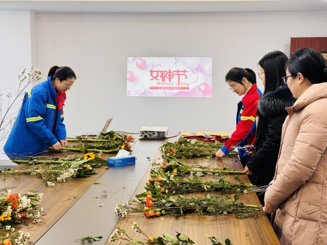 國際股份公司舉辦插花與觀影活動。女職工們以康乃馨、向日葵等花材創作藝術作品,盡顯溫婉與豪情;通過觀看《哪吒之魔童鬧海》,汲取 “打破偏見、銳意進取” 的精神力量,為集團發展注入巾幗動力。