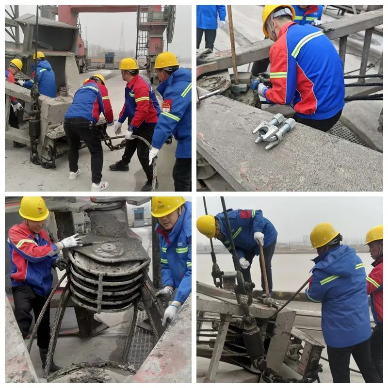 門機是港口裝卸作業的“主力軍”,而鋼絲繩作為關鍵部件,其安全性直接關聯作業效率。一季度,港區設備保障團隊利用生產間隙,對港區1#門機的鋼絲繩開展更換。面對時間緊、任務重的挑戰,團隊創新采用“分段式拆裝+滑輪組輔助”工藝,成功將單臺設備更換時間壓縮20%,并同步完成潤滑保養和隱患排查工作。設備組組長邱師傅介紹:“我們提前模擬操作流程,細化每個環節,抓住門機使用空檔期,確保‘換繩不停產’。”更換后,門機故障率下降20%,裝卸效率提升10%,為沖刺生產目標提供了堅實保障