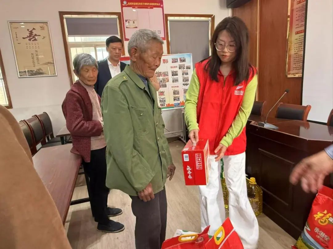 當(dāng)員工們將大米、食用油、牛奶、保暖用品等生活物資逐一遞到老人手中時,現(xiàn)場響起了陣陣掌聲。