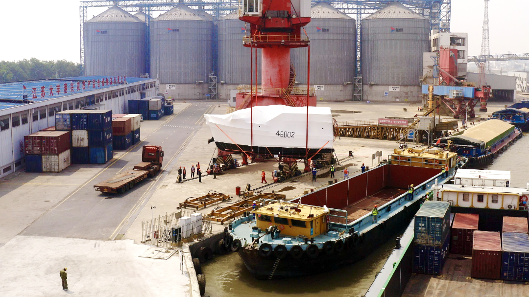 據悉,該游艇是瀚斯曼游艇公司今年生產的第5艘豪華游艇,長14.5米、寬5.2米、高7.5米,為三層結構,重量25噸。鑒于游艇體積龐大且附加值極高,公路運輸成本高、難度大,航運集團主動出擊,積極對接瀚斯曼游艇公司,詳細介紹鹽城港集團對美貨物的各項優惠措施,全方位了解游艇結構,精準剖析游艇的各項參數,反復溝通運輸難點堵點,逐條提出可行性解決辦法,最終憑借一套完善的“海河聯運”定制運輸方案,成功承攬了這次出口運輸任務。