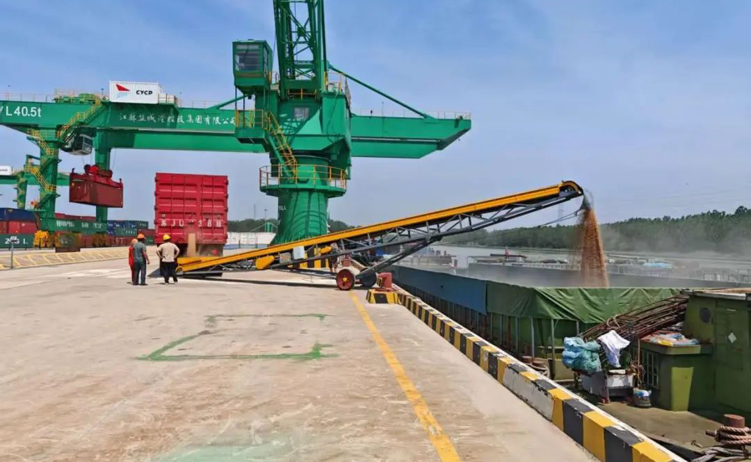 這是陸港集團亭湖港區(qū)與江蘇豐溢良之泉農(nóng)業(yè)發(fā)展有限公司攜手創(chuàng)新,首次成功應(yīng)用的“輸送帶直裝”工藝,作業(yè)量達(dá)5000噸,全年預(yù)計20000噸。為區(qū)域夏糧運輸開辟了一條高效、穩(wěn)定的水上通道,有力保障了糧食供應(yīng)鏈的暢通有序。