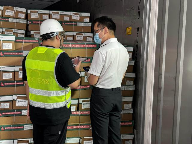保稅物流中心與速味達公司聯合構建了“原產地直采—全程冷鏈—保稅倉儲”的一體化供應鏈模式,充分運用區內先進智能溫控設備,對溫度進行精準調控,且溫度穩定性極高,波動幅度控制在極小范圍內,確保牛肉從入庫到存儲全程保持新鮮狀態,最大程度保留其優良品質。同時為助力澳洲牛肉快速入區,中心充分發揮自身在報關、報檢等環節的資源整合能力,為該批貨物開通了專屬“便捷通道”。通過與海關部門的高效聯動,內部流程的優化升級,大幅縮短貨物從到港到入庫的時間,實現澳洲牛肉的快速流轉。