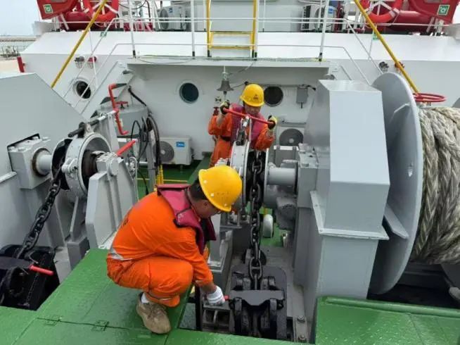 拖輪作業(yè)的成敗始于精細(xì)準(zhǔn)備。作業(yè)開(kāi)始前,鹽城港拖輪服務(wù)公司全面結(jié)合船舶噸位、潮汐數(shù)據(jù)及碼頭環(huán)境,聯(lián)動(dòng)引航站,依托智能化系統(tǒng)制定最優(yōu)作業(yè)方案;嚴(yán)格全面排查主機(jī)、舵系、纜繩等關(guān)鍵設(shè)備,確保“零隱患”運(yùn)行;實(shí)時(shí)追蹤風(fēng)浪、能見(jiàn)度及洋流變化,動(dòng)態(tài)調(diào)整作業(yè)窗口期,在極端天氣下堅(jiān)決堅(jiān)持“寧停三分,不搶一秒”原則。此外,組織全員進(jìn)行方案推演,明確拖帶點(diǎn)位、通訊指令及應(yīng)急預(yù)案,將安全標(biāo)準(zhǔn)滲透至每個(gè)環(huán)節(jié),為高效協(xié)同奠定基礎(chǔ)。