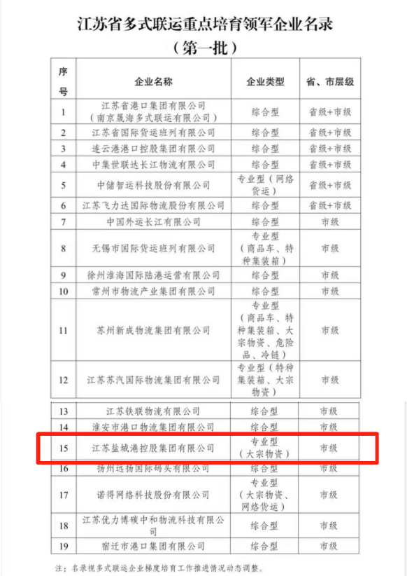 近日,江蘇省交通運(yùn)輸廳出臺(tái)《江蘇省推動(dòng)多式聯(lián)運(yùn)企業(yè)梯度培育工作方案》,并公布第一批19家重點(diǎn)培育企業(yè)名錄。鹽城港集團(tuán)憑借在多式聯(lián)運(yùn)領(lǐng)域的突出成績(jī)和顯著發(fā)展?jié)摿Γ晒θ脒x“江蘇省多式聯(lián)運(yùn)重點(diǎn)培育領(lǐng)軍企業(yè)名錄(專業(yè)型)”。