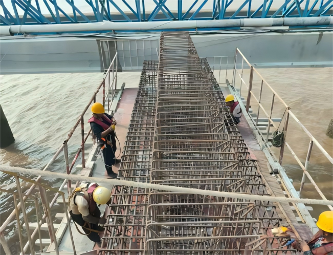 走進(jìn)糧食碼頭新建泊位及配套設(shè)施項(xiàng)目工地,施工人員正頂著烈日進(jìn)行引橋混凝土澆筑作業(yè)。“我們從項(xiàng)目開工就立下了‘進(jìn)度不滯后、質(zhì)量不打折’的軍令狀。”項(xiàng)目負(fù)責(zé)人介紹,為確保工程按計(jì)劃推進(jìn),團(tuán)隊(duì)早在開工初期就聯(lián)合施工單位、監(jiān)理部門制定了詳細(xì)的施工計(jì)劃,將工期細(xì)化到每周、每日,通過“倒排工期”的方式壓實(shí)責(zé)任。針對(duì)沿海地區(qū)夏季多臺(tái)風(fēng)、暴雨的特點(diǎn),碼頭建立了一套“預(yù)警——響應(yīng)——切換”的應(yīng)急管理體系。這種提前備好應(yīng)急預(yù)案、快速切換施工安排的模式,為工程穩(wěn)步推進(jìn)筑起了“防護(hù)墻”。