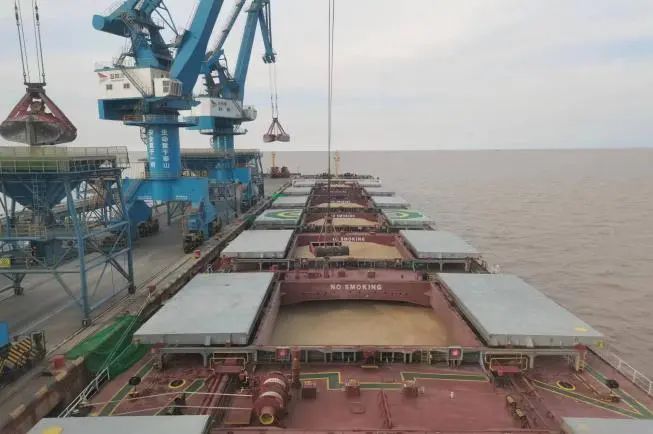“‘五月’輪請(qǐng)注意,糧食氣墊機(jī)已就位,自卸卡車編隊(duì)準(zhǔn)備就緒,請(qǐng)按引導(dǎo)靠泊。”在碼頭調(diào)度指揮中心,調(diào)度員通過散雜貨信息調(diào)度系統(tǒng)實(shí)時(shí)追蹤船舶動(dòng)態(tài),屏幕上清晰顯示著船舶到港時(shí)間、貨物種類、裝卸需求等數(shù)據(jù)。在糧食運(yùn)輸旺季,調(diào)度人員通過實(shí)時(shí)收集的數(shù)據(jù),精準(zhǔn)調(diào)配人力與設(shè)備,老帶新模式,確保作業(yè)熟練度,性能適配的裝卸設(shè)備優(yōu)先保障繁忙區(qū)域。滿載阿根廷大麥的“五月”輪抵港時(shí),恰逢引橋施工進(jìn)入關(guān)鍵階段,調(diào)度中心迅速啟動(dòng)應(yīng)急預(yù)案,啟用糧食氣墊機(jī)與自卸卡車組成雙線運(yùn)輸通道,創(chuàng)下晝夜裝卸2.7萬噸的紀(jì)錄。