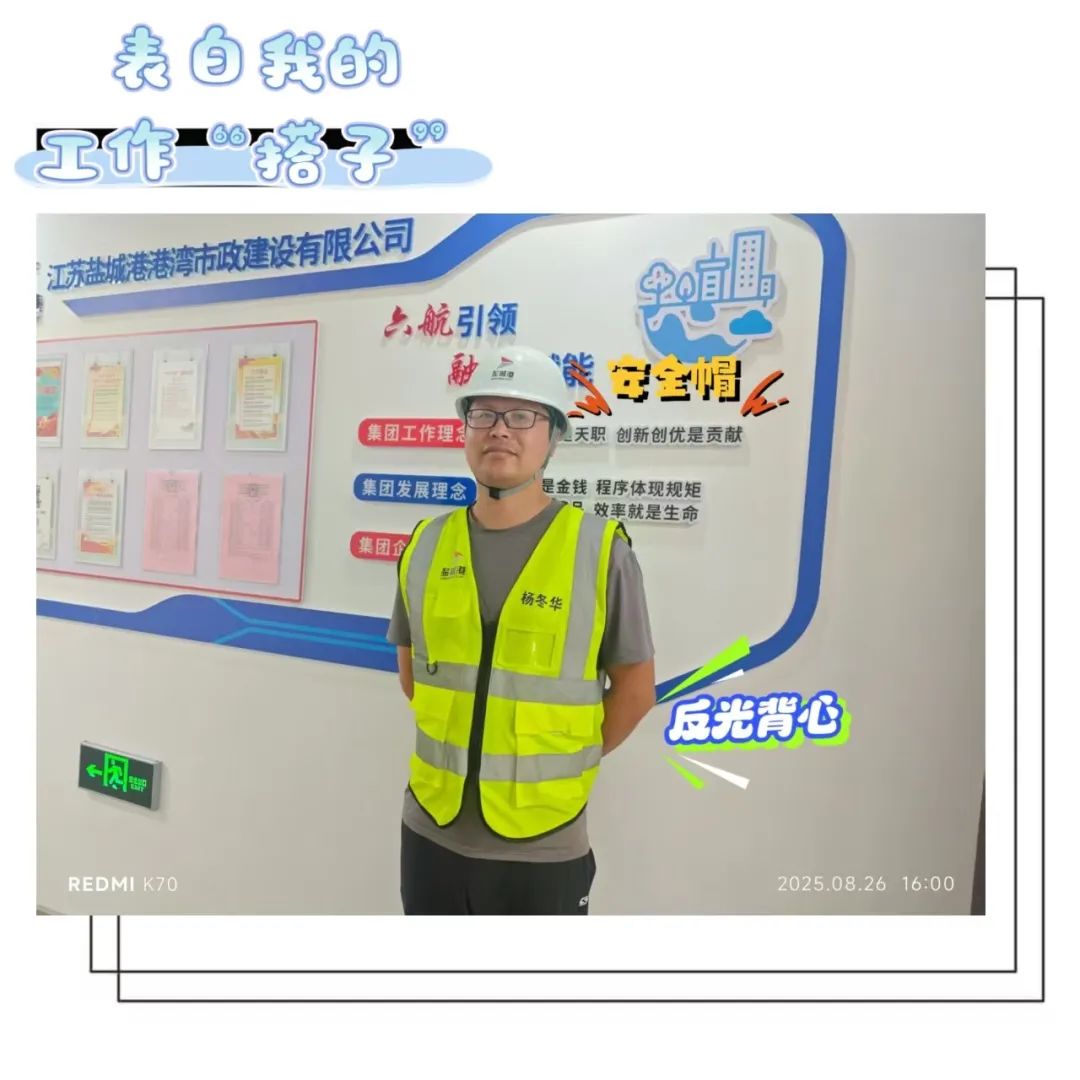 “每次踏入現場,安全帽為我筑牢‘防護墻’,反光背心讓我在環境中‘醒目在線’,這對‘黃金搭子’,是守護安全的底氣!就像七夕里的雙向奔赴,我們互相守護,在安全路上‘不離不棄’。”