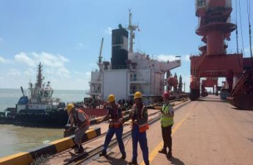 正午驕陽(yáng)炙烤,地面溫度節(jié)節(jié)攀升。調(diào)度員的工作服早已被汗水浸透,緊貼脊背,但他們沒(méi)有絲毫懈怠,不停穿梭于碼頭前沿,實(shí)時(shí)調(diào)配生產(chǎn)資源。“臺(tái)風(fēng)預(yù)警,今晚22點(diǎn)前必須卸空離泊避風(fēng)!”調(diào)度員抹去額角的汗珠,目光如釘般鎖定作業(yè)進(jìn)度,確保酷暑之下裝卸效率不降分毫。