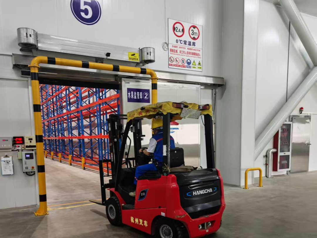 為減少冷量流失、降低設(shè)備運(yùn)行壓力,港匯保稅從“規(guī)范管理+物理防護(hù)”雙管齊下。優(yōu)化開門管理:明確冷庫門使用規(guī)范并張貼展板上墻,同步優(yōu)化作業(yè)流程,單次開門作業(yè)不超過5分鐘、非必要不頻繁開關(guān)門,減少冷量外泄;強(qiáng)化保溫修補(bǔ):定期檢查庫體保溫層,對(duì)發(fā)現(xiàn)的裂縫、孔洞等破損,采用高性能保溫材料及時(shí)修補(bǔ),從源頭減輕制冷設(shè)備負(fù)荷,既延長設(shè)備使用壽命,又進(jìn)一步減少能耗損耗。