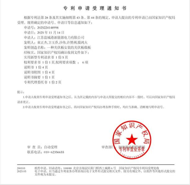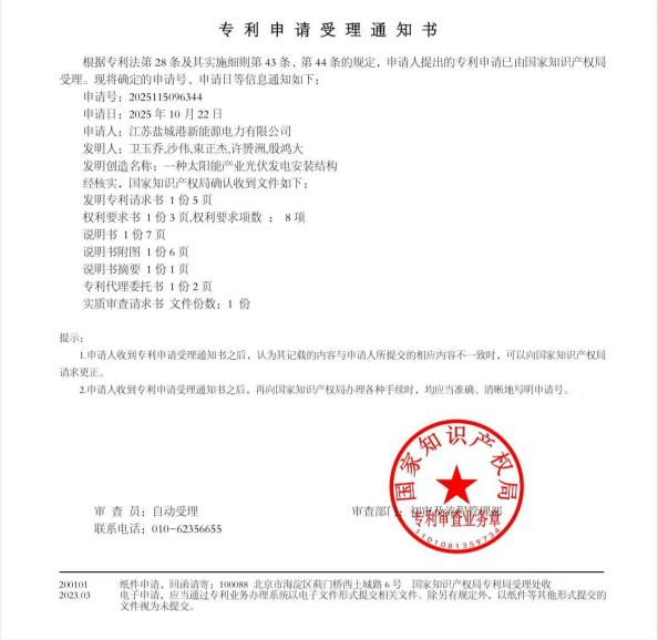 新能源電力公司自成立以來,始終專注于光伏發(fā)電技術、風力發(fā)電技術、智能電網(wǎng)等的研發(fā)、投資與應用,貫徹落實“創(chuàng)新驅動發(fā)展”的理念,嚴格履行集團黨委要求,高度重視研發(fā)與核心技術積累,今年以來已取得一項實用型專利,申報發(fā)明型專利、實用型專利各一件。