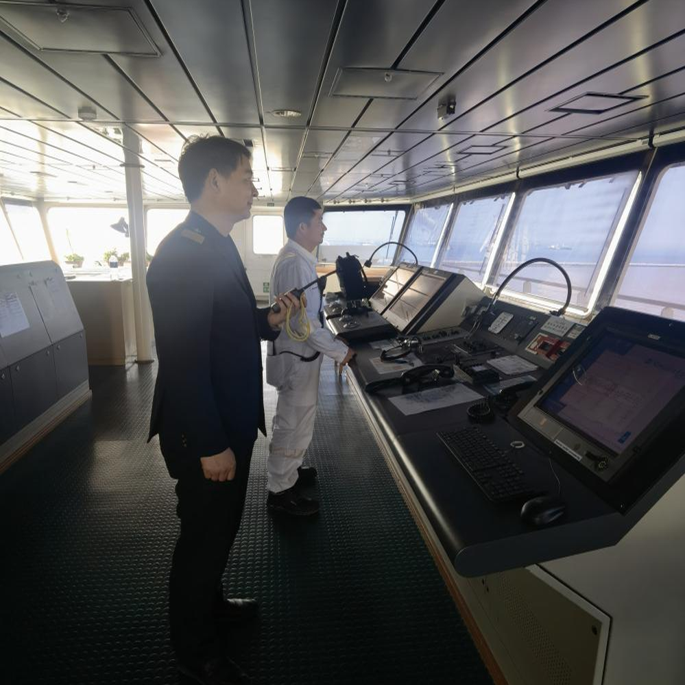 作業過程中引航員手持對講機精準發令,拖輪協同配合穩控船身;調度室里,實時數據跳動間,靠離泊時間被科學壓縮。這高效的配合,為海纜吊裝、規范綁扎擠出了寶貴時間,讓每一批海纜都能按時登船,也讓全年引航任務實現“零差錯”。