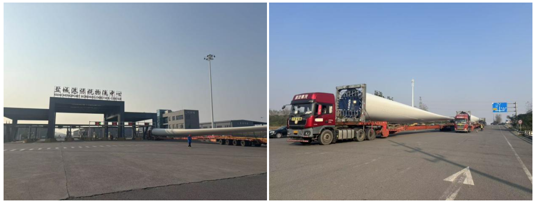 “百日攻堅”號角吹響以來,鹽城港保稅物流中心主動聚焦重大件貨物物流服務痛點難點,將風電葉片入庫作業列為重點攻堅任務。籌備階段,中心組建專項攻堅小組,綜合研判運輸銜接、場地調度、機械適配等多維度因素,制定“一貨一策”詳盡作業方案,對流程節點逐一梳理、閉環解決;同步協調管委會、海關等職能部門,針對風電葉片運輸道路通行需求,通過拆除影響通行的路燈等舉措保障道路通暢,進一步優化作業保障體系;搭建分工明確、協同高效的作業團隊,提供全程精細化服務。針對風電葉片“超長、超重”的特性,中心專項開展安全操作集中培訓,明確崗位職責、規范統一指揮流程,強化安全技術交底與風險點辨識控制,全方位筑牢大件作業安全防線,以專業能力為攻堅任務保駕護航。