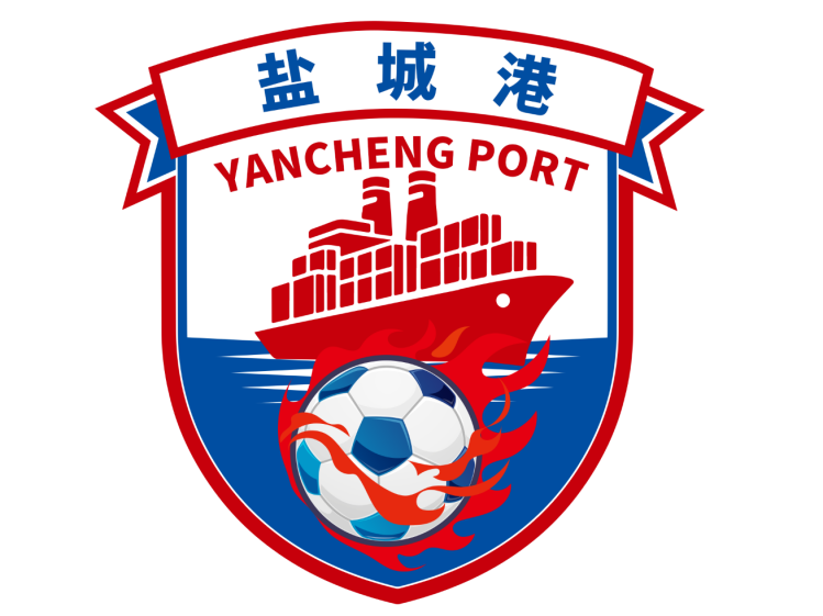 隊徽中央的紅色集裝箱巨輪破浪前行,是鹽城“出海門戶”的鮮明標識,象征著鹽城港的蓬勃發展與開拓進取的時代精神。下方的足球被火焰環繞,寓意著球隊如火的激情、拼搏的斗志,以及在綠茵場上勢不可擋的前進動力。