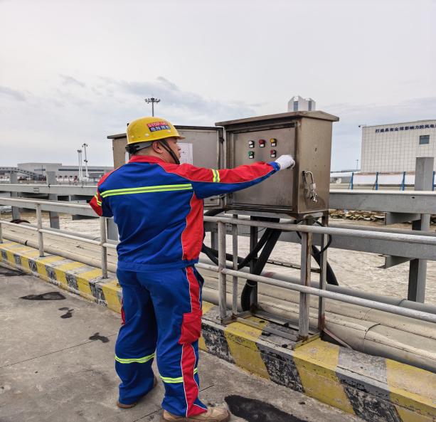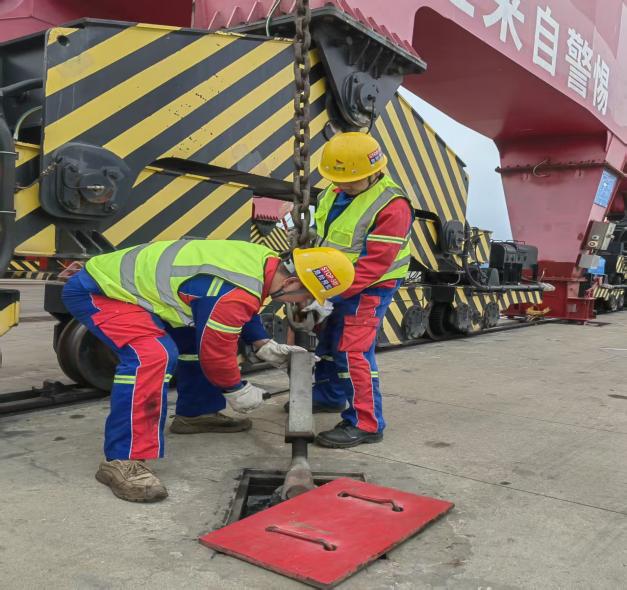 風(fēng)險(xiǎn)防控“再夯實(shí)”,守牢安全底線。“夜間陣風(fēng)可達(dá)9級(jí),請(qǐng)立即加固門機(jī)防風(fēng)拉索,定位、錨固、鎖緊、檢查,一步不落?!贝a頭上,生產(chǎn)班組長正通過對(duì)講機(jī)反復(fù)叮囑,確保防風(fēng)措施落實(shí)落細(xì)。3#變電所內(nèi),水電班組正在開展惡劣天氣專項(xiàng)線路巡檢工作,對(duì)高低壓線路、電纜溝、變壓器、開關(guān)柜等進(jìn)行拉網(wǎng)式排查,重點(diǎn)檢查線路破損、接頭發(fā)熱、絕緣老化等隱患,并全面測(cè)試應(yīng)急照明,全力筑牢碼頭設(shè)備安全運(yùn)行的堅(jiān)固防線。