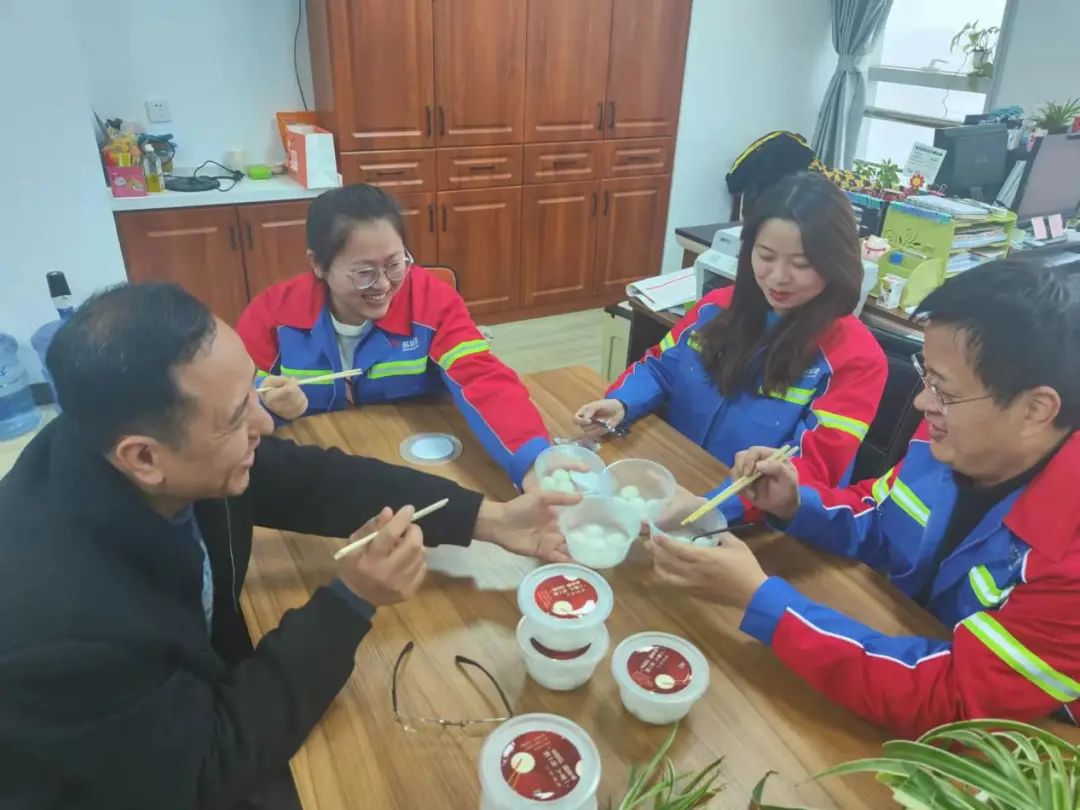 隨后,大家分工協作、緊密配合,將一顆顆親手制作的甜美湯圓盛在碗里,各公司主要領導將精心包裝好的湯圓送到生產一線和外貿勞務專班隔離點每一位員工手上,向他們致以節日的祝福和慰問,并鼓勵他們大力弘揚勞動精神和工匠精神,為公司發展貢獻更大智慧和力量。