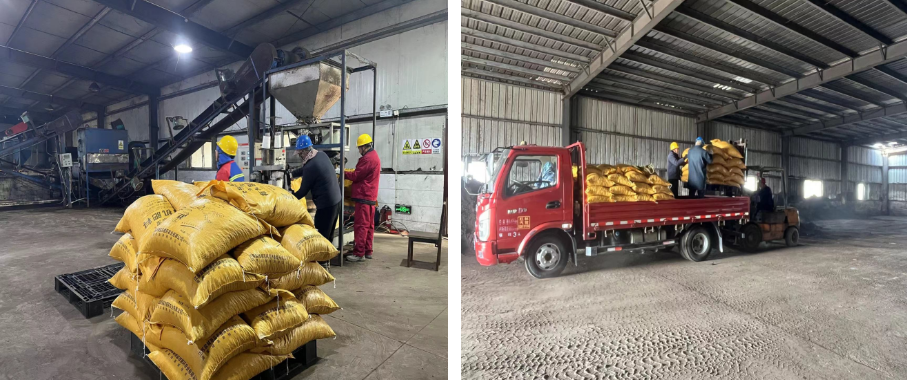 循環(huán)農(nóng)業(yè)廠區(qū)固肥車(chē)間內(nèi),生產(chǎn)線的工人師傅加班加點(diǎn)趕訂單、抓生產(chǎn),確保春耕化肥供應(yīng),伴隨著生產(chǎn)車(chē)間機(jī)器的轟鳴聲,一袋袋包裝好的化肥整齊碼放在廠房里。隨著春耕時(shí)節(jié)的到來(lái),現(xiàn)在月出貨量都在50噸左右,叉車(chē)來(lái)回穿梭,裝卸工人們一刻不停將肥料裝上發(fā)往各鄉(xiāng)鎮(zhèn)的貨車(chē),現(xiàn)場(chǎng)一派繁忙卻又井然有序的生產(chǎn)景象。