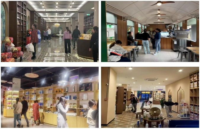 園區(qū)內(nèi)多元業(yè)態(tài)有機融合,購物、文化展示、休閑娛樂等服務(wù)一應(yīng)俱全,滿足了不同游客的個性化需求。特別是以國內(nèi)外特色為主題的展銷館,如俄羅斯館、大洋洲館、歐洲館等,讓游客領(lǐng)略各地文化精粹,輕松實現(xiàn)全球購。同時,港泊面館、港泊雅苑、港泊韓膳閣、港泊中歐班列體驗館和港泊韓式風(fēng)味體驗店等特色餐飲也為游客提供了地道美食,備受游客青睞。