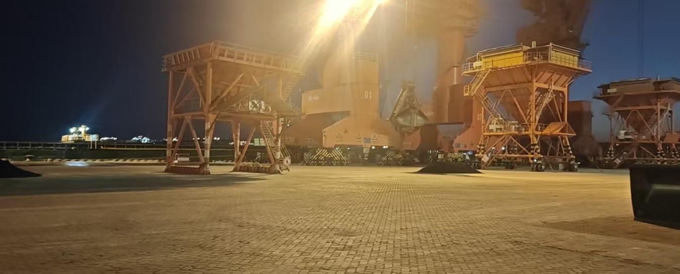 船舶抵港前,現(xiàn)場調(diào)度人員根據(jù)實(shí)地實(shí)情統(tǒng)籌協(xié)調(diào),對泊位前沿、堆存場地等做到全流程銜接;生產(chǎn)運(yùn)營負(fù)責(zé)人積極聯(lián)系海關(guān)、海事等口岸單位優(yōu)化通關(guān)流程,為貨物快速通關(guān)開辟綠色通道;卸貨前,門機(jī)司機(jī)及時(shí)查驗(yàn)抓斗作業(yè)精準(zhǔn)度和作業(yè)穩(wěn)定性;針對石油焦易揚(yáng)塵等特點(diǎn),設(shè)置專用隔離區(qū)域,同步啟用噴淋降塵系統(tǒng),在卸船、轉(zhuǎn)運(yùn)、堆存各環(huán)節(jié)實(shí)施全程濕法作業(yè),全過程實(shí)現(xiàn)“零污染、零損耗、零事故”。