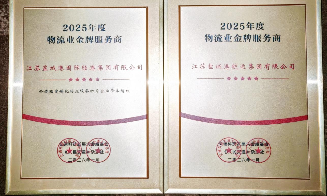 近日,在青島舉辦的第六屆中國交通科技發(fā)展大會上,鹽城港陸港集團(tuán)、航運集團(tuán)憑借各自的“全流程定制化物流服務(wù)”創(chuàng)新模式和“綠色智慧賦能多式聯(lián)運高質(zhì)量發(fā)展”特色實踐,雙雙榮獲“2025年度全國物流業(yè)金牌服務(wù)商”稱號。