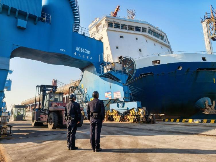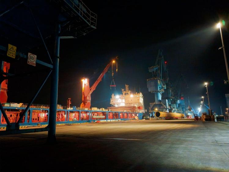 “UHL FLAIR”輪吃水深,為確保其于當日9時灌河口當月最大潮水時段安全出港,海關(guān)、海事、邊檢、引航、港口多部門緊密聯(lián)動、協(xié)同發(fā)力,筑牢外貿(mào)運輸保障線。海關(guān)全程指導關(guān)心,進一步完善“船邊直裝”監(jiān)管模式,精簡通關(guān)流程、提升通關(guān)效率,有效降低裝船時間,為貨物快速放行保駕護航;海事部門科學優(yōu)化進出航道船舶調(diào)度,精準管控通航秩序,排除各類航行安全隱患;邊檢主動靠前服務(wù),推行網(wǎng)上預報預檢服務(wù),實現(xiàn)邊檢手續(xù)“一次辦妥、高效辦結(jié)”,大幅縮短船舶在港停留時間;引航站提前一周鉆研最新航道測繪圖,結(jié)合潮汐規(guī)律量身制定引航方案,確保船舶航行安全可控;響水港區(qū)堅持安全底線,實行掛圖作戰(zhàn),精準測算每件管樁到港與裝船時序,細化環(huán)節(jié)責任,實現(xiàn)全程高效作業(yè)。