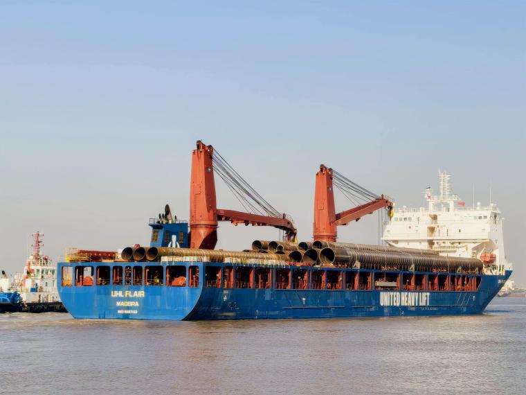 春潮涌動,戰(zhàn)鼓催征。近日,在鹽城港響水港區(qū)碼頭,外貿(mào)船“UHL FLAIR”輪滿載71件大型油氣管樁,緩緩駛離泊位,駛向阿聯(lián)酋扎伊德卡港。這批貨物的順利出運,為港區(qū)2026年首月外貿(mào)出口業(yè)務(wù)添上厚重一筆,以“開門紅”的強勁勢頭,掀起了全年向海圖強、開放發(fā)展的嶄新篇章。
