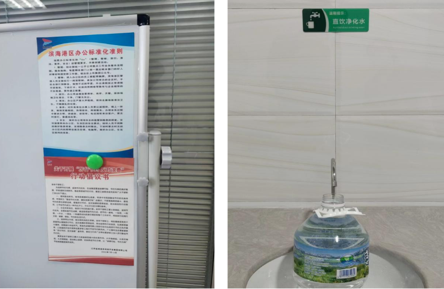 與此同時,濱海港區(qū)還在宿舍生活集聚區(qū)、辦公區(qū)各樓層共安裝了7臺凈化飲水機(jī),一改過去瓶裝用水浪費現(xiàn)象的發(fā)生,弘揚(yáng)了節(jié)儉美德,杜絕了鋪張浪費。對公眾場所場地用水處,放置了反對浪費、節(jié)約為榮,惜水、愛水(節(jié)水,從我做起)、安全用電等宣傳標(biāo)牌,以多種形式營造綠色節(jié)儉、文明用水、安全用電的勤儉氛圍。