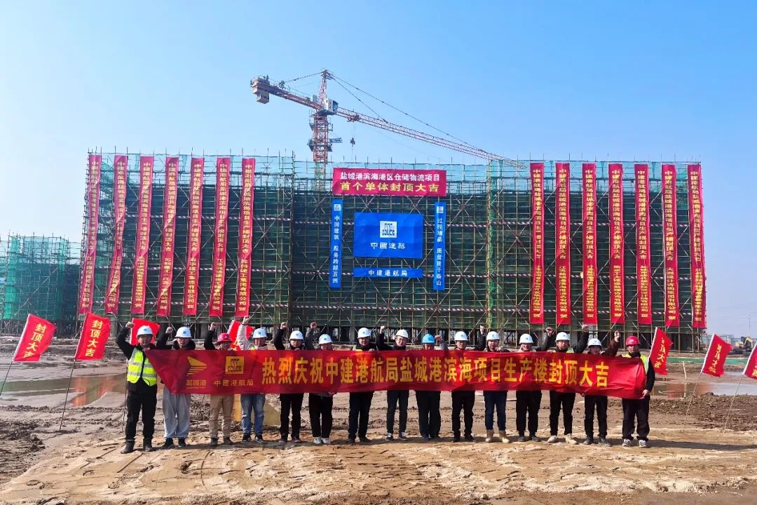 1月29日,濱海港區倉儲物流項目生產樓順利封頂,提前節點工期10天完成節點目標,項目施工取得階段性進展。