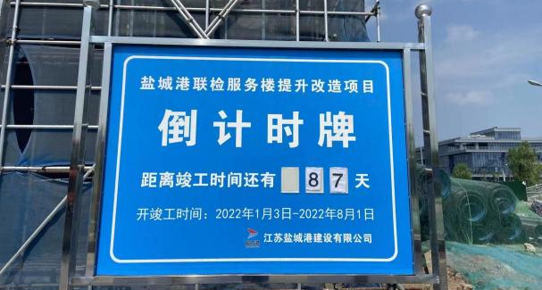 “爭分奪秒,會戰百日”,近日,由實業集團負責的重點工程-鹽城港聯檢服務樓提升改造項目進入竣工會戰倒計時。在建設現場,機聲隆隆,建設者們以“咬定青山不放松”的韌勁,搶抓疫情防控態勢持續向好的有利時機,開足馬力,大干快上。