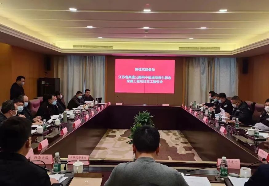 會上,項目的建設單位、設計單位、監理單位、施工單位分別進行了總結匯報,交工驗收委員會經過討論審議,一致認為江蘇省高速公路網中鹽城港指引標志完善工程項目已完成合同內容,施工符合設計、規范要求和交工標準,項目順利通過交工驗收。