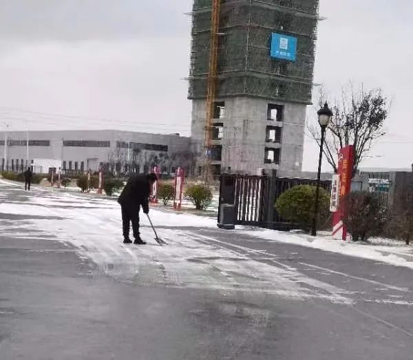 面對大雪這場嚴峻考驗,實業集團物業公司全體員工堅守崗位,嚴陣以待。在鹽城港各個港區內,各項目組負責人深入各物業服務點坐陣指揮,物業工作人員分工明確,高效清掃港區的積雪,確保路面無積雪結冰、安全通暢。