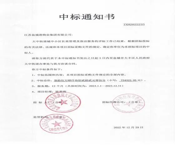 拓市場,保增長,項(xiàng)目業(yè)績創(chuàng)一流。實(shí)業(yè)集團(tuán)在提升物業(yè)服務(wù)質(zhì)量、房屋租賃水平,擴(kuò)大鹽城港集團(tuán)“內(nèi)循環(huán)”的同時,逐步向外部市場拓展。1月,黃海港城公司與中天大豐電纜有限公司成功簽訂員工宿舍租賃存量住宅業(yè)務(wù)合同,合同金額近30萬元。物業(yè)公司成功中標(biāo)大中街道城中小區(qū)長效管理及保潔服務(wù),中標(biāo)價約75萬元。